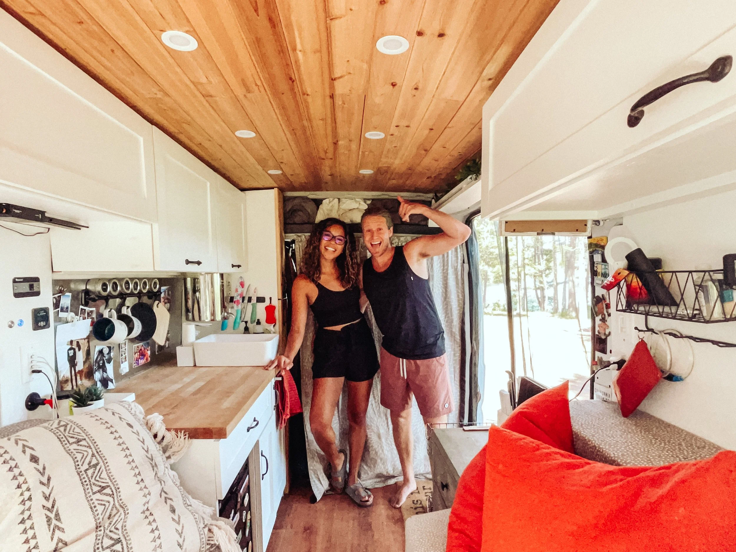 Us posing with our self-built campervan, Beverly Ann the Van.