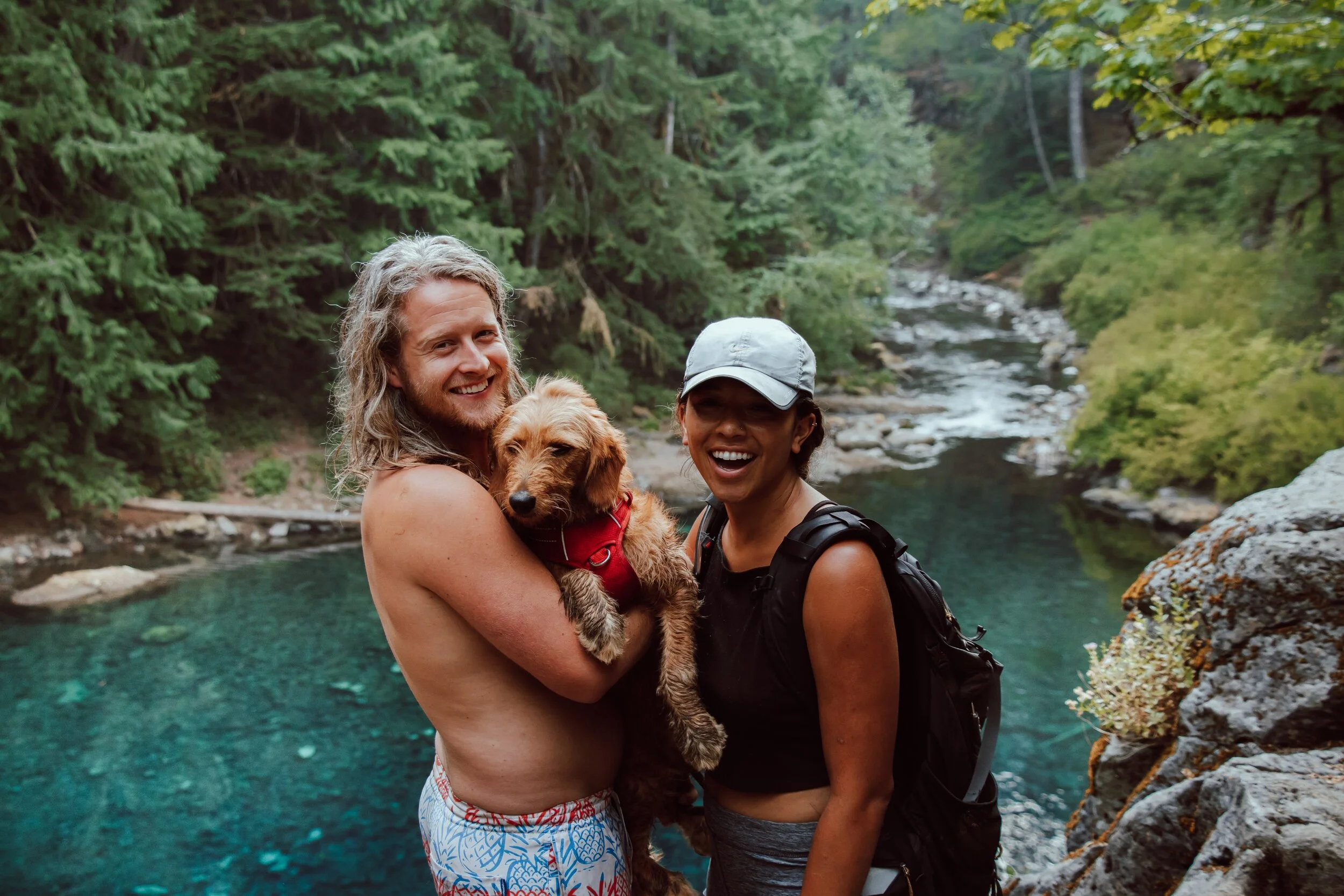 I travel with my wife – who works remotely from home – and our well-behaved mini goldendoodle.