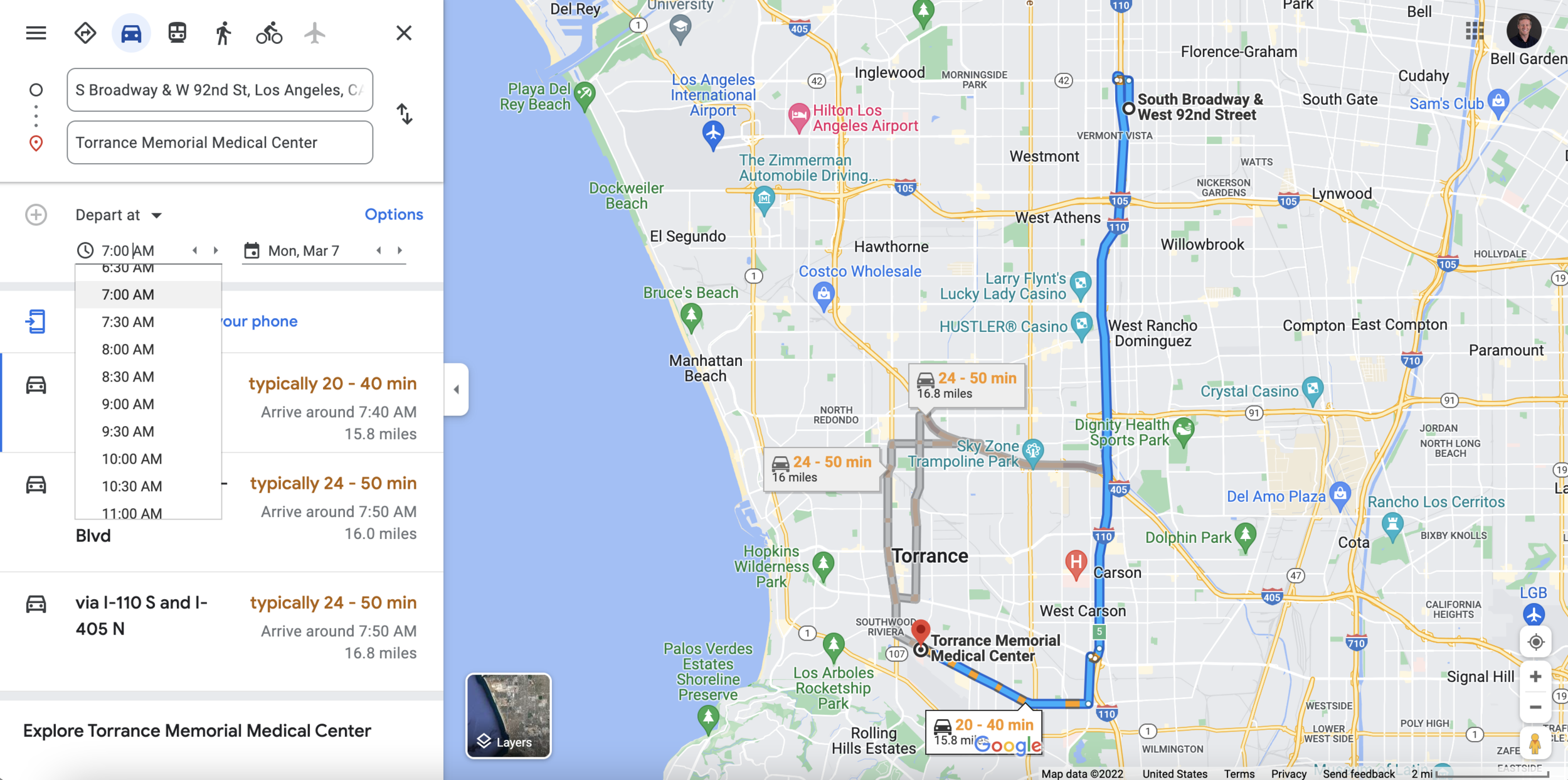 End destination: Your workplace – e.g. Torrance Memorial Hospital