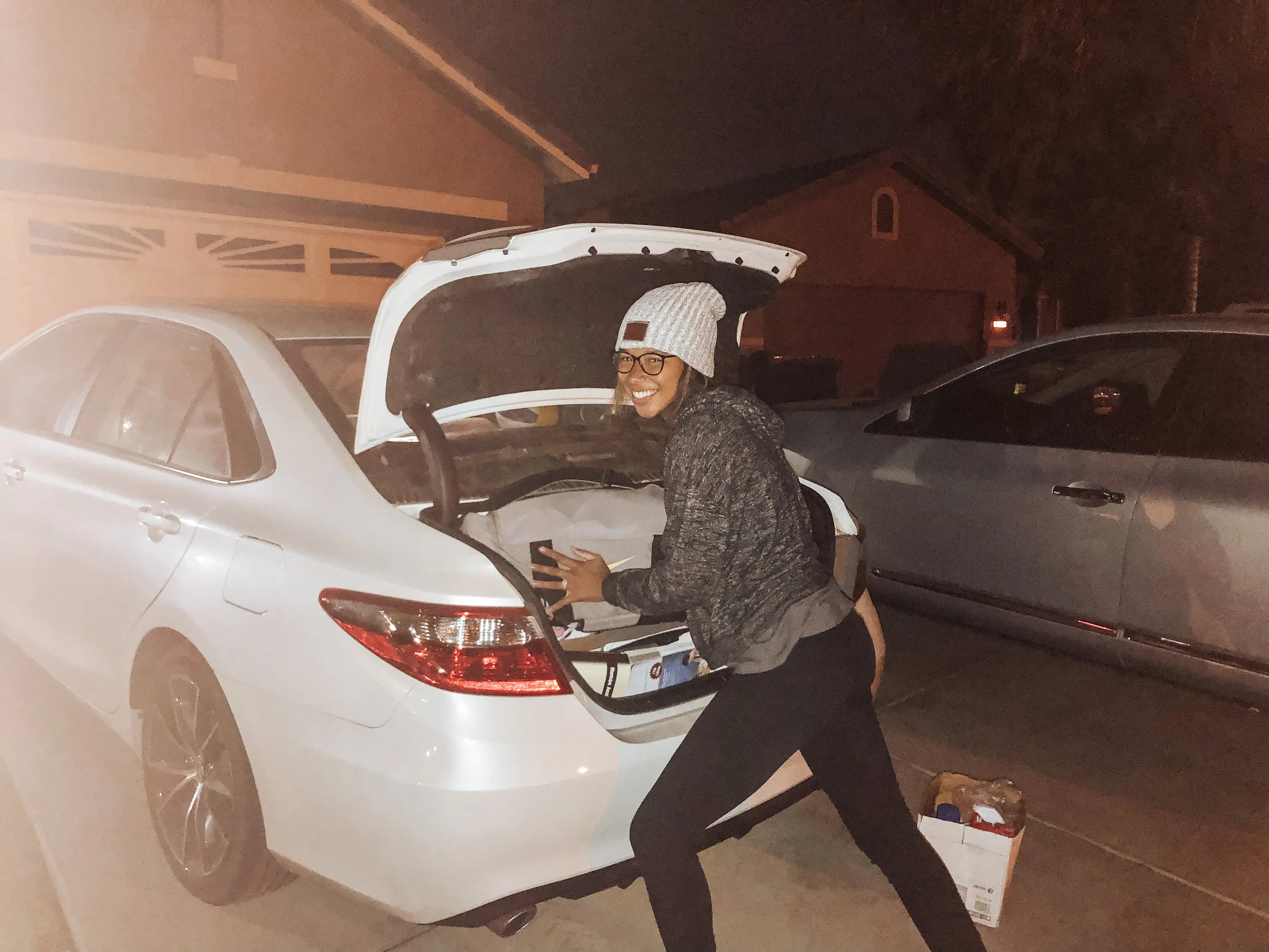 Jazz stuffing everything into our trunk when we used to fit all our belongings in a Toyota Camry. She’s the Car Tetris QUEEN!