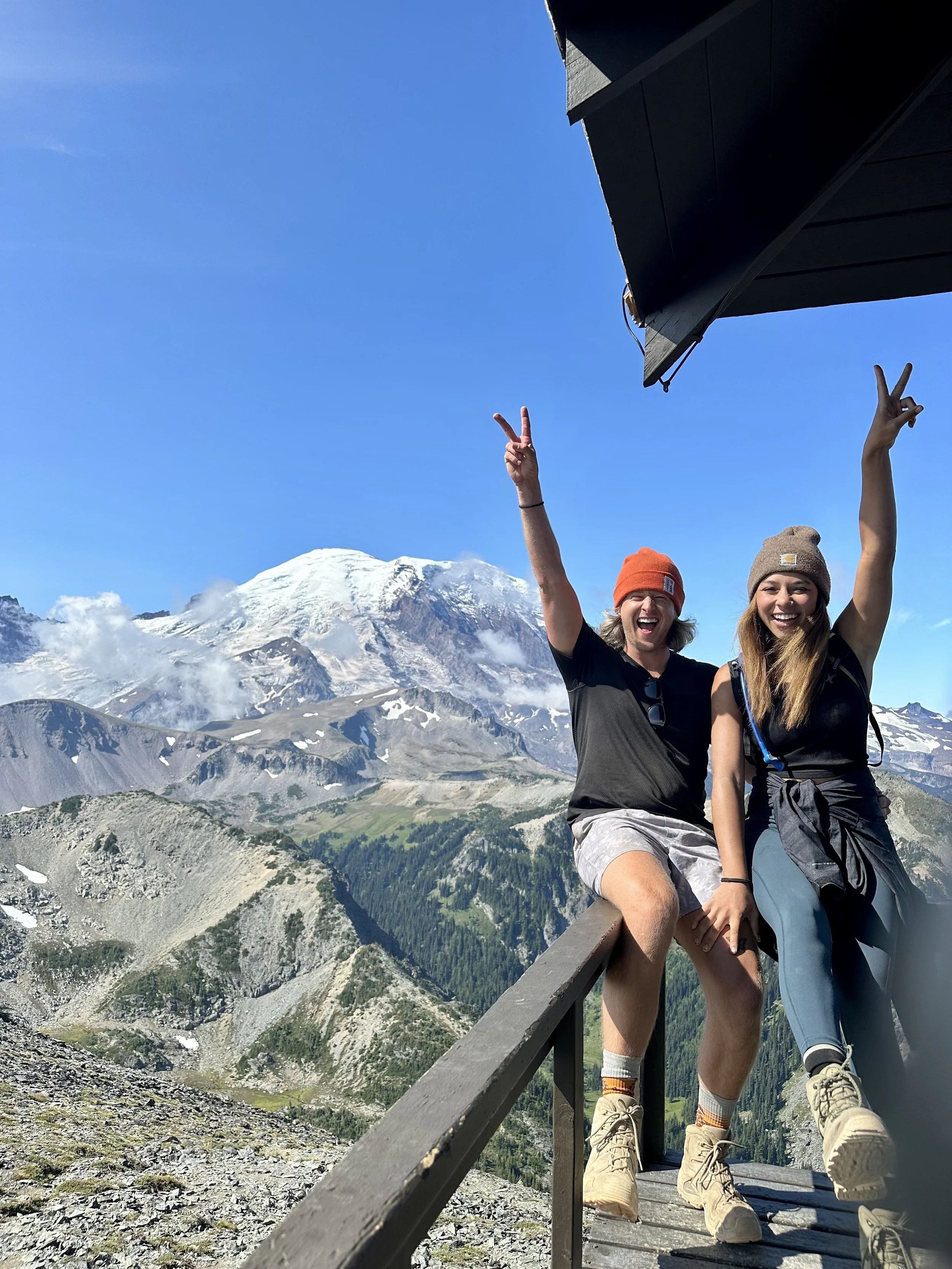 Celebrating after reaching the peak of a beautiful hike in Mount Rainier. Hiking is one of my favorite ways to combine movement, mindfulness, and grounding.